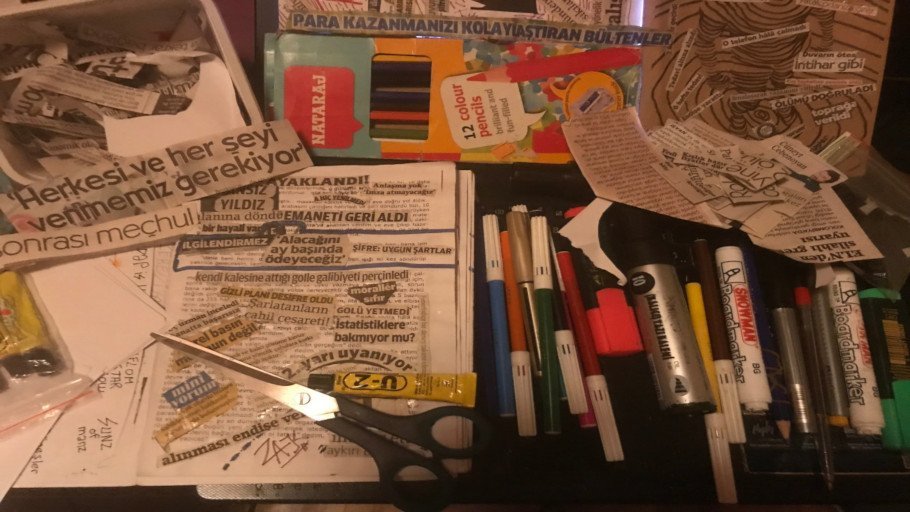 Yığınla sayfa ve kalemlerle birlikte savaş alanındayımdır”